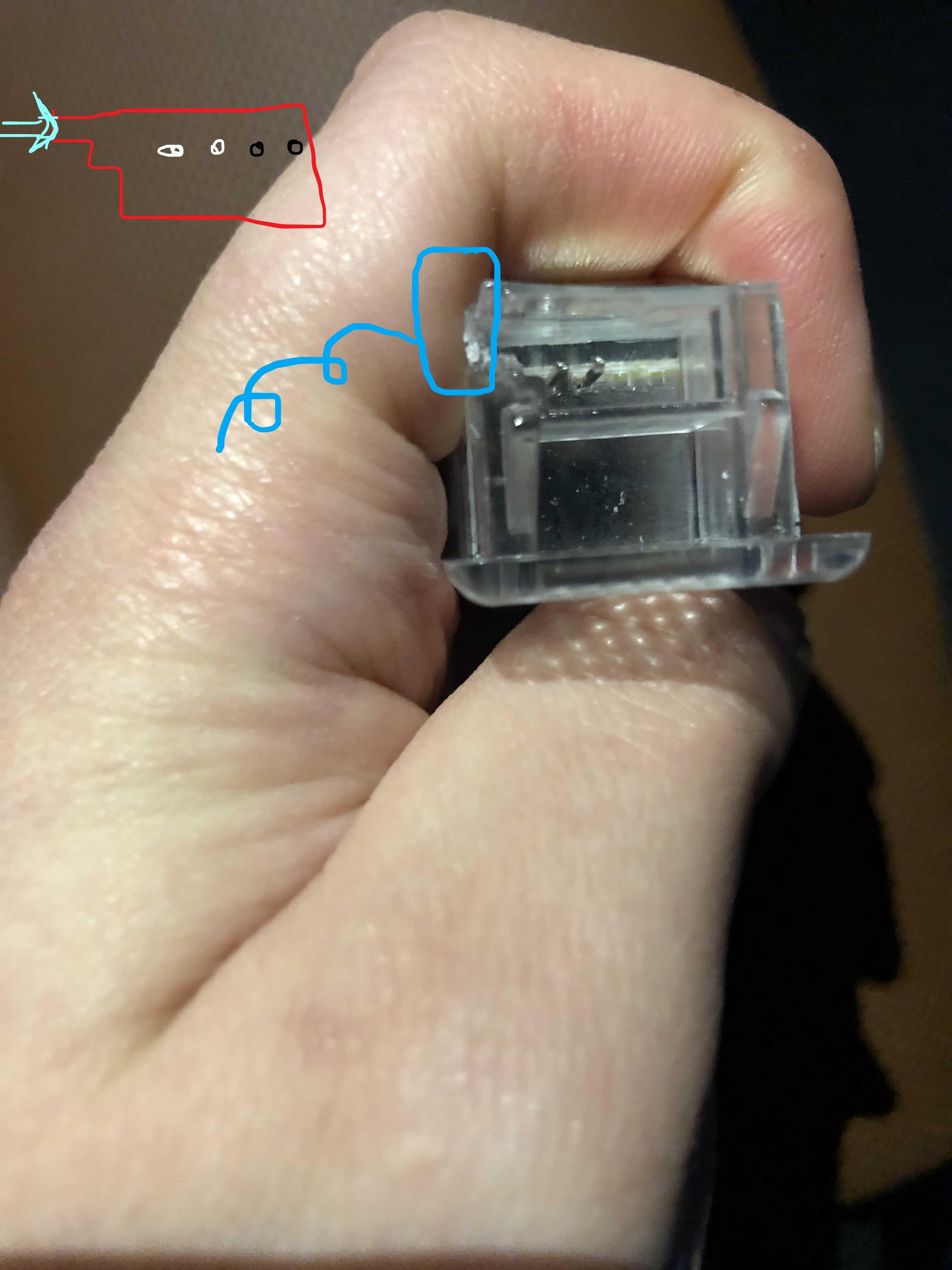 위 사진을 보면 순전형의 단자 위치는 계단 맨 아래에 있지만, 새로 산 제품은 계단 중간에 위치했다. 그래서 와꾸가 맞지 않아 제대로 체결을 할 수 없다.. 그래서 오른쪽 사진 파란색 표시처럼, 새 제품의 맨 위쪽 층의 "옆면" 부분을 니퍼로 찢었다. (단자도 계단형으로 생겨서 딱 맞추려면 옆면만 찢어야 한다. 다 찢으면 연결이 헐렁해져서 운행 중 빠질 우려가 있다.) 연결이 좀 용이하게 말이다.. 한 0.7cm 정도 찢었나, 드디어 단자가 깔끔하게 체결이 됐다!