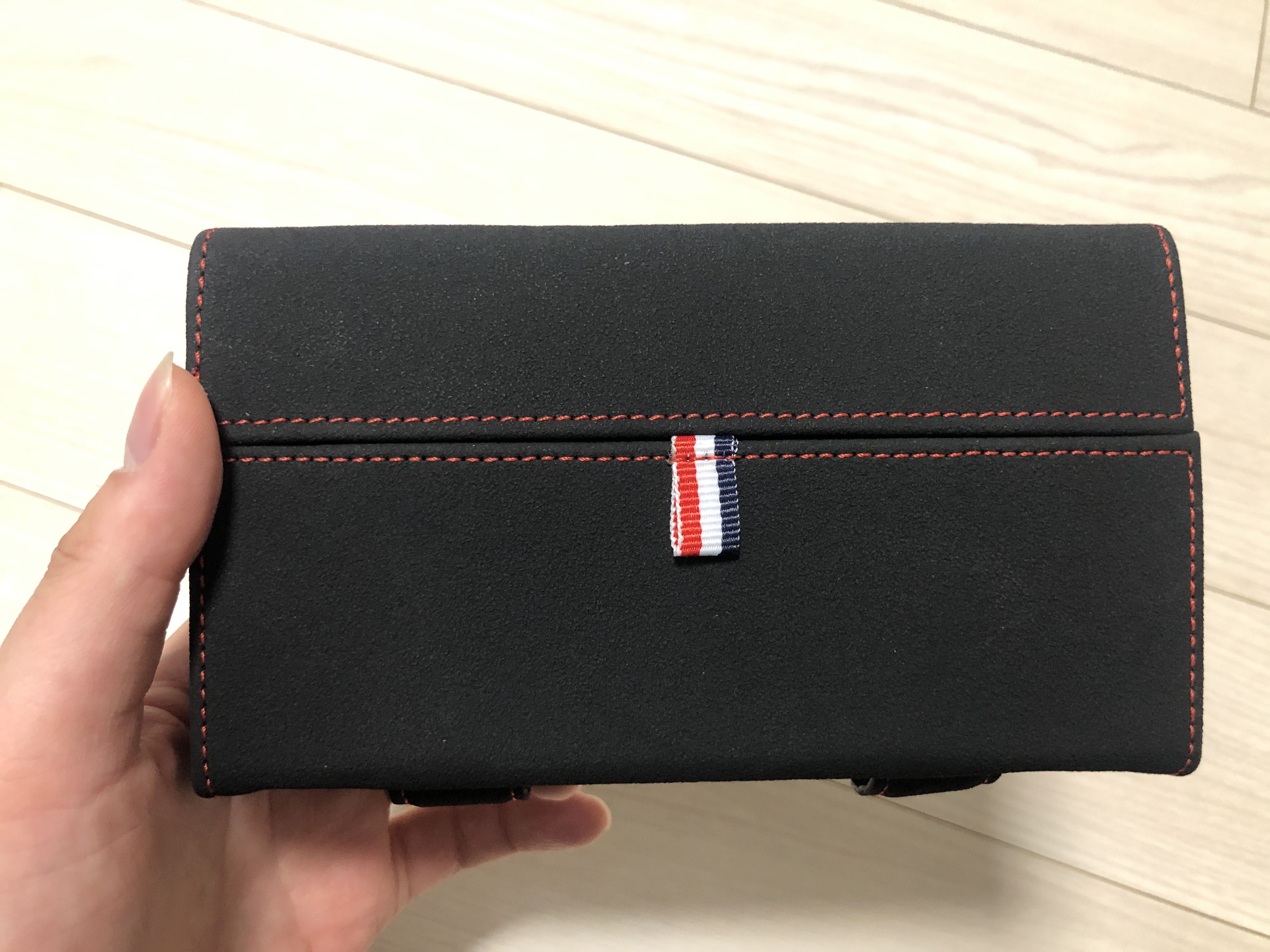 모양새는 특별할 것 없이 평범한데, 빨간색 스티치가 심심한 검정색 케이스를 좀 깔끔해 보이게 해준다. 프랑스 국기같은 저 줄을 잡고 당기면 보관함이 열리는데, 그 안에 선글라스를 넣으면 된다. 측면부를 보면 쇠로 된 두 개의 클립이 있어서, 선바이저에 이 클립을 벌려서 끼우면 되는데, 생각보다 빡빡해서 강하게 고정이 될 것 같다.